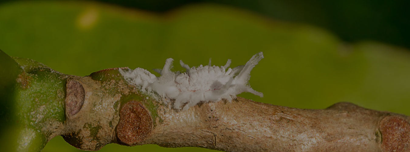 Mealybugs are soft, oval, wax-covered insects that are usually found in colonies. They have piercing-sucking mouthparts that sap out of the leaves and stems of plants and produce abundant honeydew. These little white bugs can be found anywhere on the plants but are mostly found on new growth, along the veins of leaves, and at the leaf joints.