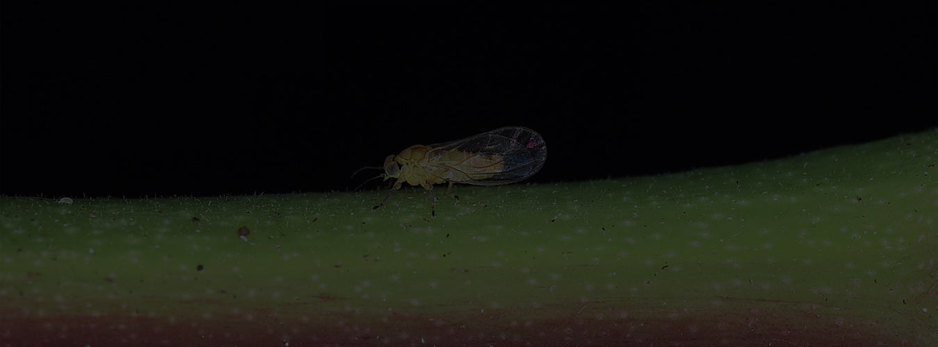 Psyllids are tiny sap-sucking insects that secrete sticky honeydew. Adults resemble small, winged cicadas and are about 0.1 inches long. Most species of psyllids have very host-specific feeding preferences meaning feed exclusively on a single type of plant.